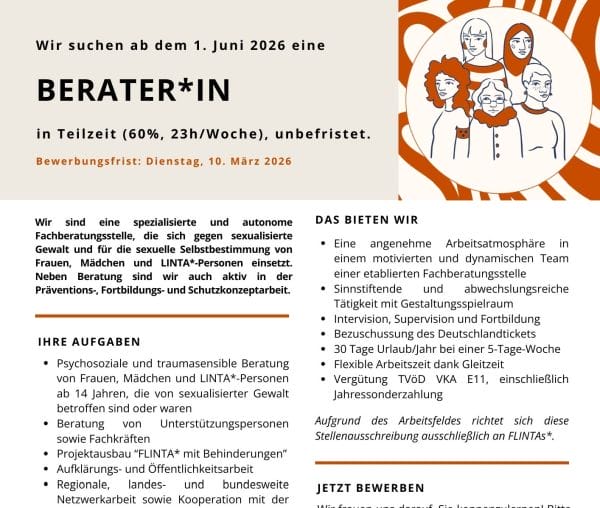 Aufgrund des Arbeitsfeldes richtet sich diese Stellenausschreibung ausschließlich an FLINTAs*.