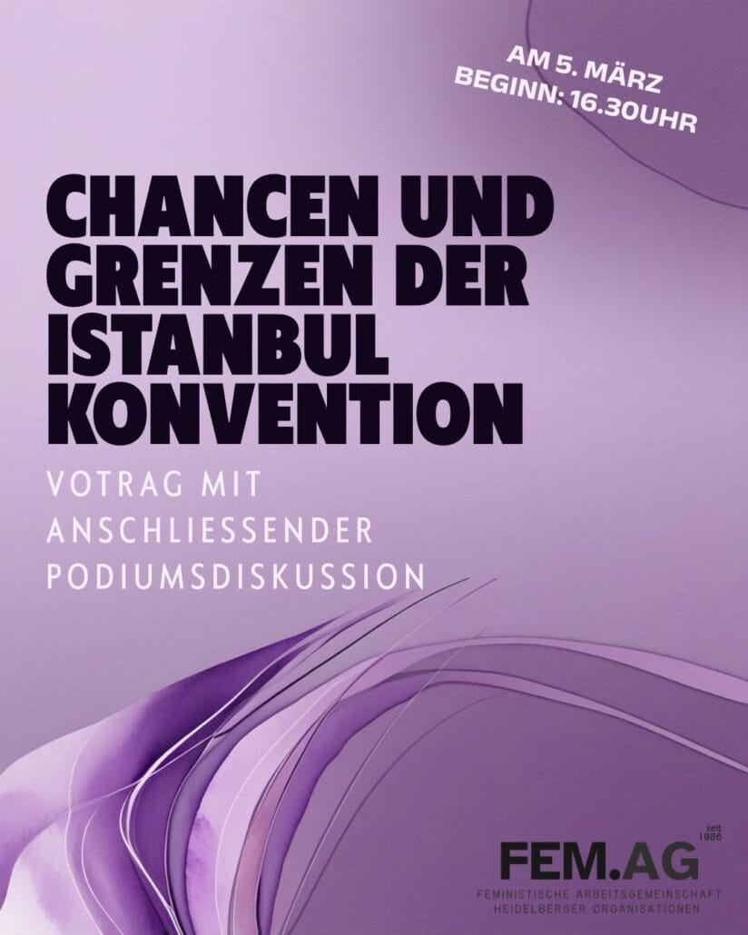 Die Veranstaltung wird organisiert von der Fem.AG, einem feministischen Bündnis Heidelberger Organisationen, das sich seit 1978 für Gleichstellung, Gewaltschutz und feministische Vernetzung in Heidelberg einsetzt.